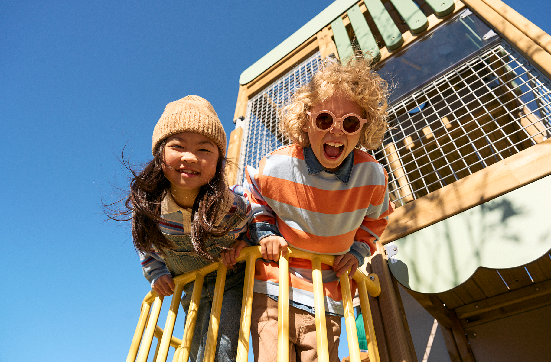 Nur wenige Dinge auf dieser Welt sind sowohl individuell als auch bezahlbar. Unsere neue modulare Spielplatzkollektion ändert das, mit maßgeschneiderten Konzepten für jede Anlage, ob groß oder klein. Die Prime-Spielgeräte sind in fünf frischen Farbkombinationen (Wiese, Blüte, Glut, Schnee, und Nebel) erhältlich, die sich harmonisch in unterschiedliche Umgebungen einfügen. Jede Farbpalette ist darauf abgestimmt, die natürliche Wärme der nordischen Kiefer zu betonen.