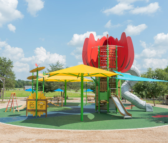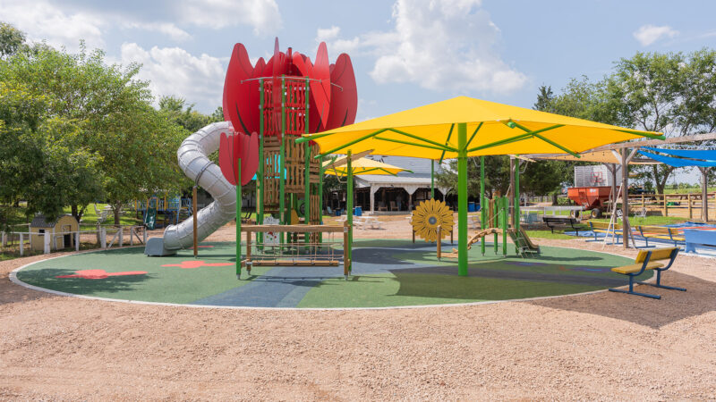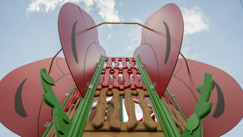 Das thematische Konzept des Spielplatzes greift direkt die ikonischen Blüten der Burnside Farms auf und verwandelt natürliche Inspiration in physische, multisensorische Erlebnisse. So entsteht eine visuell eindrucksvolle und zugleich bedeutungsvolle Umgebung, in der jedes Detail Bewegung, Kreativität und Storytelling unterstützt.