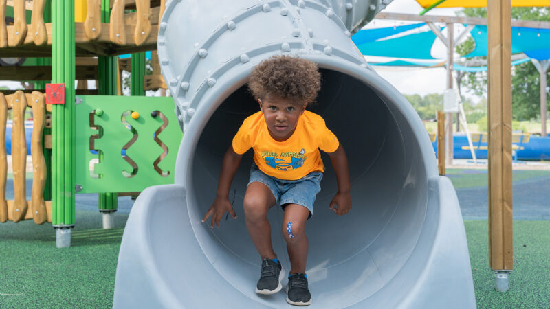 - Barrierefreie Wege und inklusive Geräte, die Kinder aller Fähigkeiten willkommen heißen.