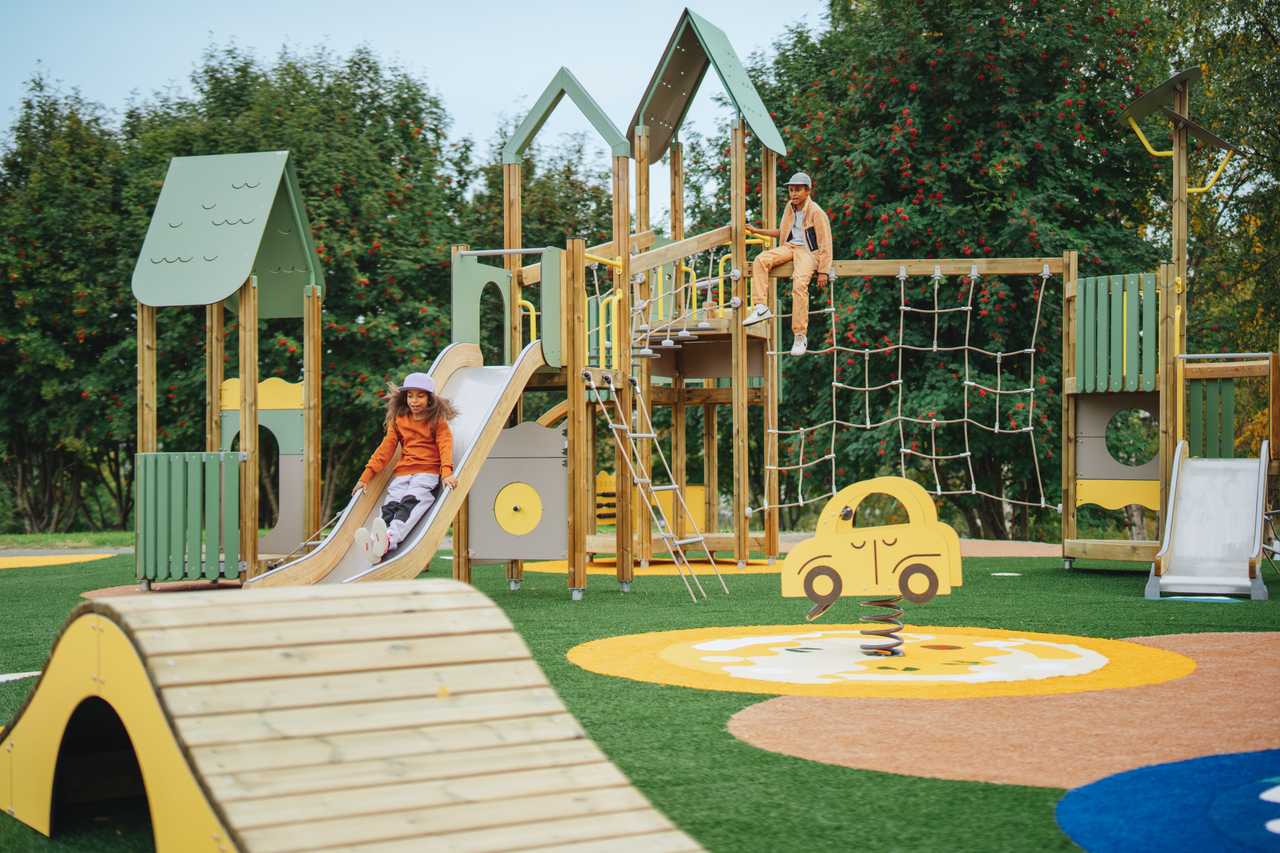 Im Konttinen Park bedeutet inklusives Design, dass niemand ausgeschlossen und alle eingeladen sind. Jedes Spielelement fördert Bewegung, Zusammenarbeit und Kreativität mit der perfekten Balance aus Spaß und Funktionalität.