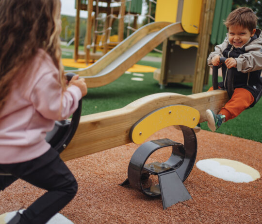 Wippen: Sara & Karin: Sara fördert Teamwork und Koordination mit Platz zum Stehen, Sitzen oder gemeinsamen Bewegen. Karin ist kleiner und leicht zugänglich perfekt, um jüngeren Kindern spielerisch Vertrauen zu geben.
