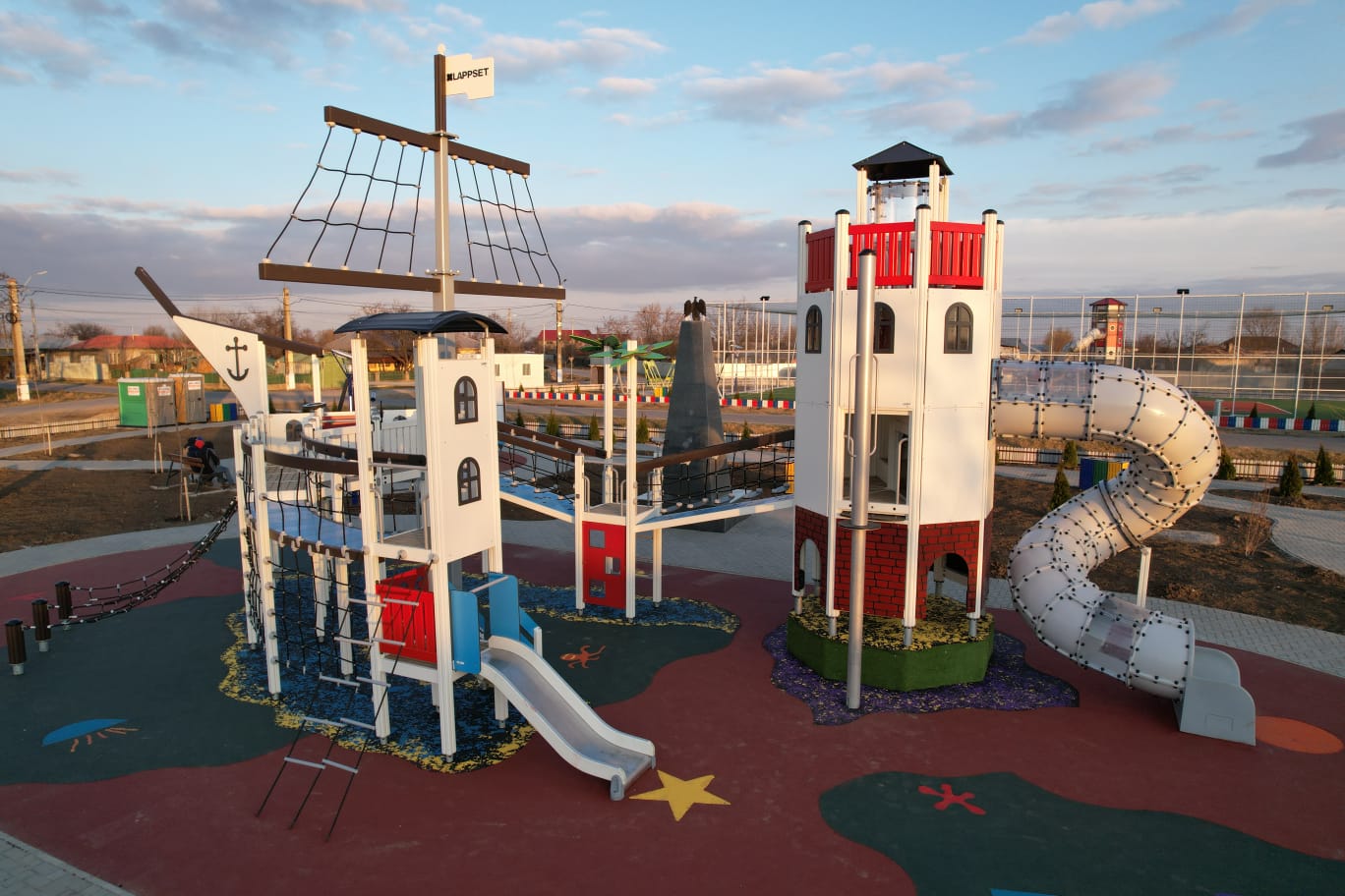 Im Dorf Vădeni im Kreis Brăila, nahe dem Donaudelta und dem Schwarzen Meer, entstand ein außergewöhnlicher maritimer Spielplatz. Das Ozean-Thema spiegelt die geografische Lage wider und schafft eine starke Identität für den öffentlichen Raum.