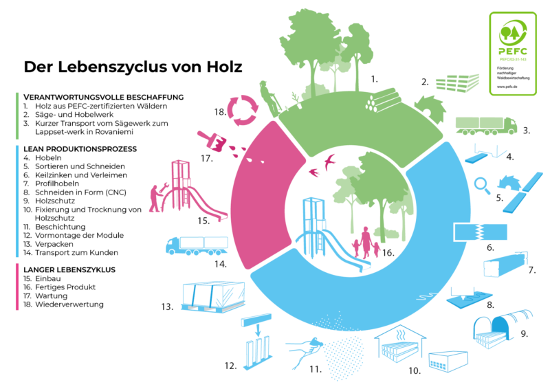Lappset verwendet PEFC-zertifizierte nordische Kiefer