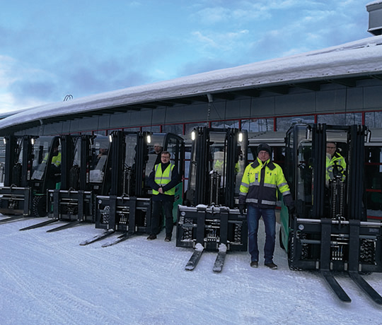 Lappset setzt seit 2017 Elektro-Gabelstapler in seinen Fabriken für Innen- und Außenarbeiten ein. Im Herbst 2023 wurden im Werk in Rovaniemi bereits acht mittelgroße Elektro-Gabelstapler eingesetzt, die in einer finnischen Fabrik in Järvenpää hergestellt wurden. Elektro-Gabelstapler stoßen keine Emissionen in Innenräumen aus und sind daher nicht nur umweltfreundlich, sondern auch sicher für das Personal.