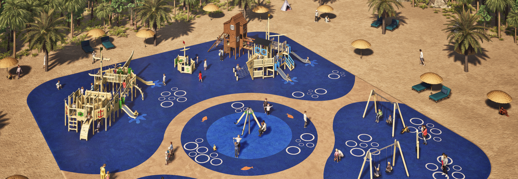 So entsteht eine klare Dramaturgie für die Fläche: Hafen – Aufbruch – Expedition – Rückkehr. Genau das macht Themen-Spielplätze so wirksam für Standorte mit Familienpublikum.