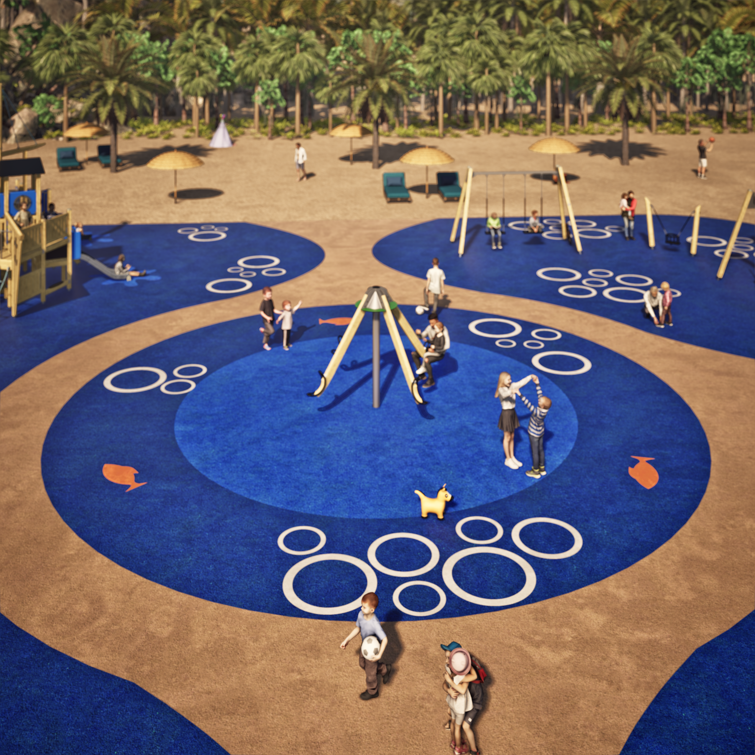 - Spielschiff mit Hafen – der zentrale Anlaufpunkt für Crew, Handel, Schatzkisten und Anlege-Manöver. Klettern, Rutschen, Verstecken, Rollenspiel: hier entsteht das “Hafenleben”, das Familien lange am Platz hält.