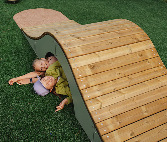 Was bedeutet ihre Arbeit persönlich für die beiden Designer? Haapala sagt, sie liebe es zu sehen, wie Kinder auf dem Spielplatz ihre Grenzen testen und völlig in ihrem Spiel aufgehen: „Wenn die Umgebung Fantasie weckt, zu neuen Spielen inspiriert und Kinder tief eintauchen lässt, weiß man, dass das Design funktioniert.“ Choi wiederum lässt sich von seinem zehnjährigen Sohn inspirieren: „Ich habe viel gelernt, einfach indem ich ihm auf dem Spielplatz folge. Denn letztlich ist das Verständnis der Nutzer der Kern dessen, was wir tun.“