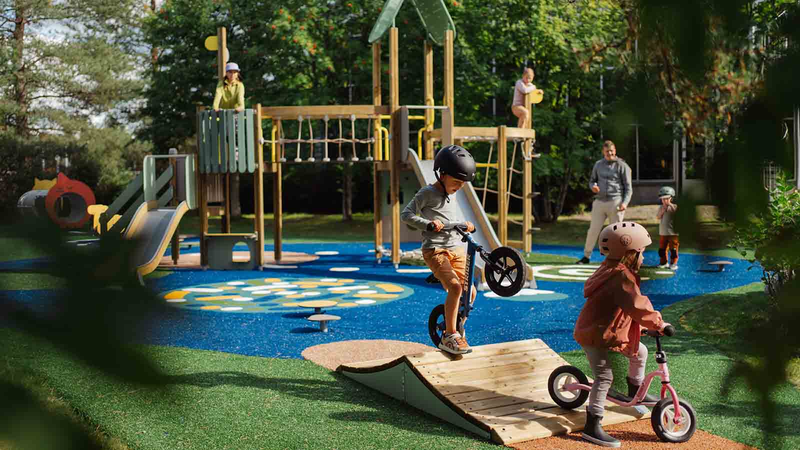 „Durch das Spiel entwickeln Kinder grundlegende Fähigkeiten motorische, kognitive und soziale Kompetenzen. Ein gut gestalteter Spielplatz bietet eine sichere Umgebung, die Wachstum, Kreativität und Fantasie fördert“, sagt Haapala. Alles basiert auf einer verbundenen und inklusiven Designsprache, ergänzt sie: „So können wir die Anzahl der Nutzer und Spielstunden maximieren und einen positiven Effekt auf jeder Ebene schaffen.“